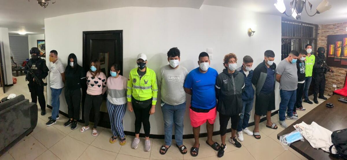 DETENIDOS. Se encuentra Kevin Roberth Tamayo Vasconez, Carlos Andrés Guaylupo Vasconez, José Daniel Guaylupo Vasconez, Jair Alexander Mayon Vasconez, Johanna Melissa Pardo Vasconez, María José Guaylupo Vasconez, Hjalmar David Morocho Cachi, Marcelo Javier Camacho Serna, Ronny Eduardo Morocho Cordova, Edwar Andrés Lozano Duque, todos ellos de nacionalidad ecuatoriana, y Franyimar Yoisiret Monge Bastidas de nacionalidad venezolana.
