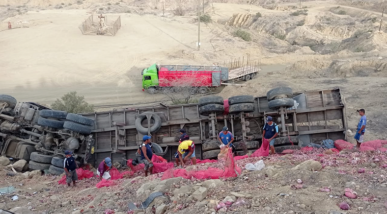 Al parecer el experimentado chófer no pudo controlar la última curva peligrosa que lo llevó a caer al abismo, lugar donde perdió la vida. Mientras los sacos de cebolla que cuyo destino era el distrito fronterizo de Aguas Verdes en Tumbes, quedaron tirados en plena vía nacional.