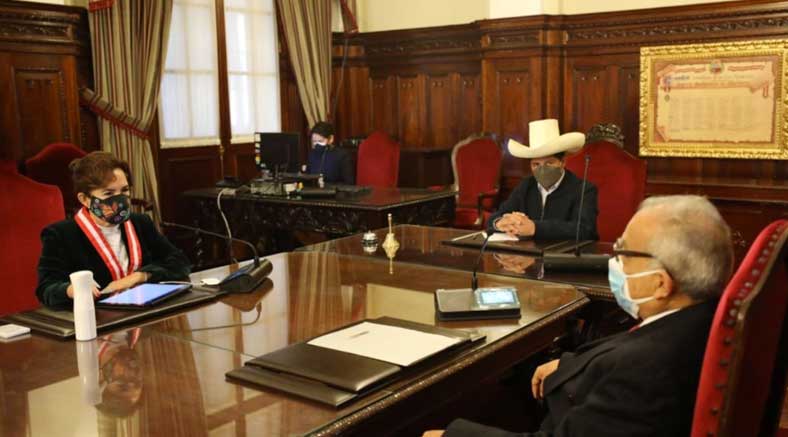 El presidente de la República, Pedro Castillo Terrones, sostuvo hoy una reunión de trabajo con la presidenta del Poder Judicial, Elvia Barrios, en la sede del organismo judicial.