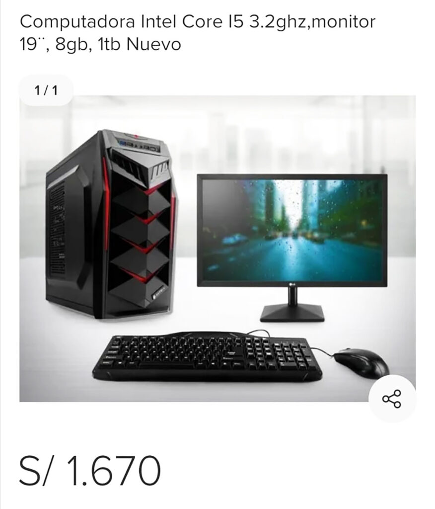 Asimismo la municipalidad le pagó a la proveedora Medina Urbina 8,000 soles por dos equipos de cómputo (procesador i5), cuando los dos equipos de cómputo en el mercado comercial tienen un costo de 3,340 Soles, en donde cada uno tiene un valor de 1,670 soles según consulta realizada a Mercado Libre.