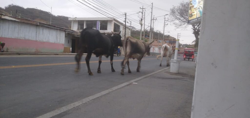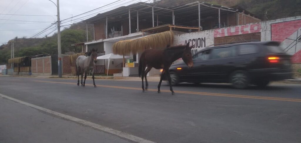 Equinos y vacunos deambulan diariamente por las calles del distrito de Zorritos representando un peligro para los transeúntes y transportistas.