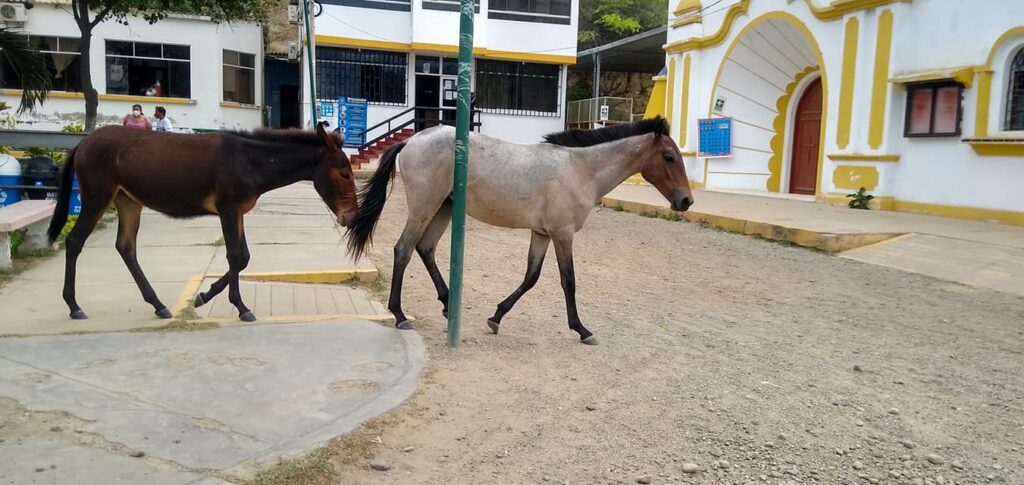 Hace un par de días ciudadanos enviaron fotografías evidenciando la presencia de caballos en las calles de la ciudad, sueltos y sin ningún control. Las imágenes captadas por nuestro corresponsal Julio Rafael Magán Comettant, se puede observar a estos animales deambulando en plena carretera Panamericana Norte o en los exteriores del palacio municipal.