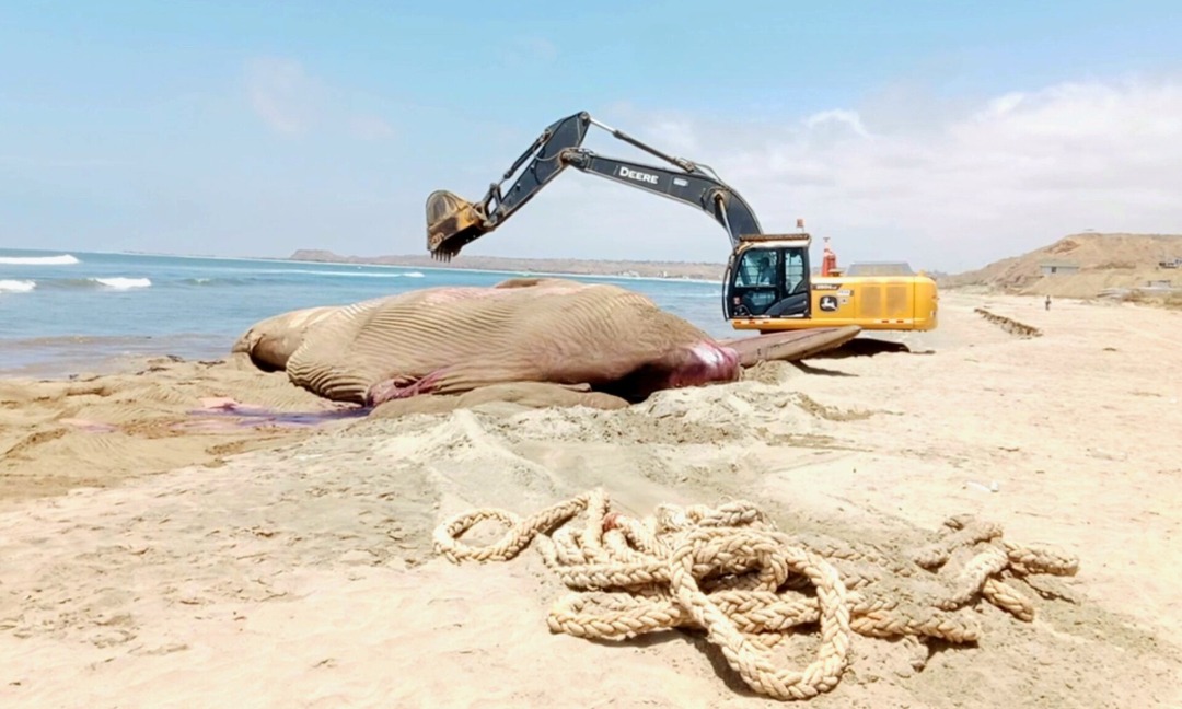 La Municipalidad Distrital de Canoas de Punta Sal procedió al entierro de una ballena azul hembra subadulta que varó en la playa de Plateritos, en la provincia de Contralmirante Villar, región Tumbes. La acción se realizó con el apoyo de maquinaria pesada debido a las grandes dimensiones del cetáceo.