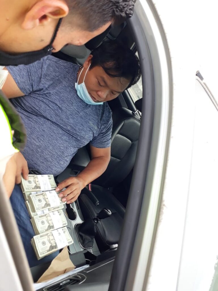 Dos mochilas y un bolso 14 mil dólares fueron halladas en el interior de la camioneta. Al solicitar que justifiquen la tenencia de dicho valor, mencionaron que eran comerciantes, sin embargo no presentaron ninguna documentación que compruebe su legalidad.
