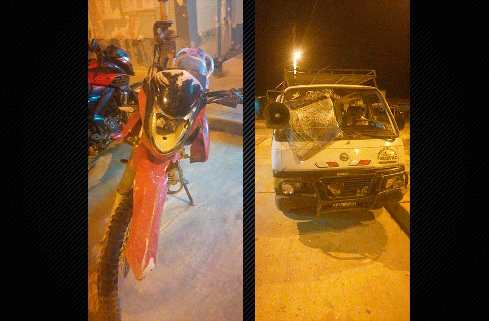 El conductor de la combi identificado como Adolfo Valero Pavón, sufrió unos cortes en el rostro ya que por la misma fuerza del impacto se le rompió el parabrisas, mientras que el conductor de la moto lineal llevó la peor parte, con lesiones de mayor consideración y además se habría encontrado en aparente estado de ebriedad.