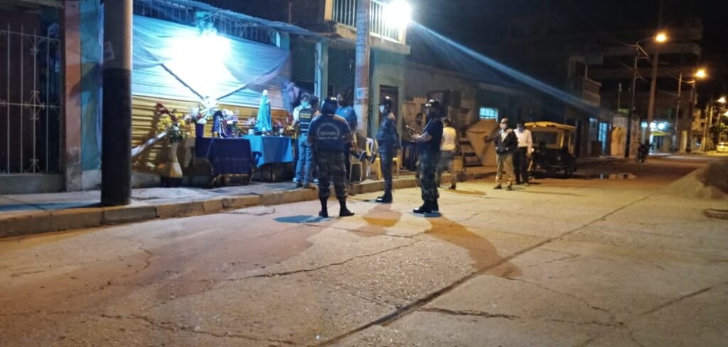 Sentados, con las miradas hacia el cielo y aglomerados; así fueron intervenidos un grupo de personas que se juntaron en plena calle en el distrito de La Cruz, provincia de Tumbes, para participar del rosario por la celebración de la Virgen Perpetuo Socorro y Señor Cautivo de Ayabaca.