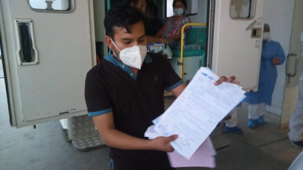 Según las declaraciones de estos familiares ellos han estado esperando desde las 11 de la mañana con sus pacientes en una ambulancia para ser internados, debido a que estaban saturando menos poniendo en riesgo su vida por la falta de oxigenación.