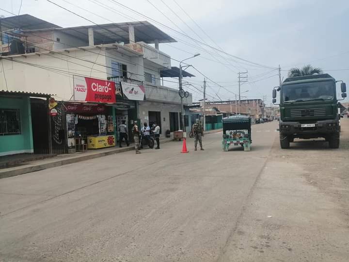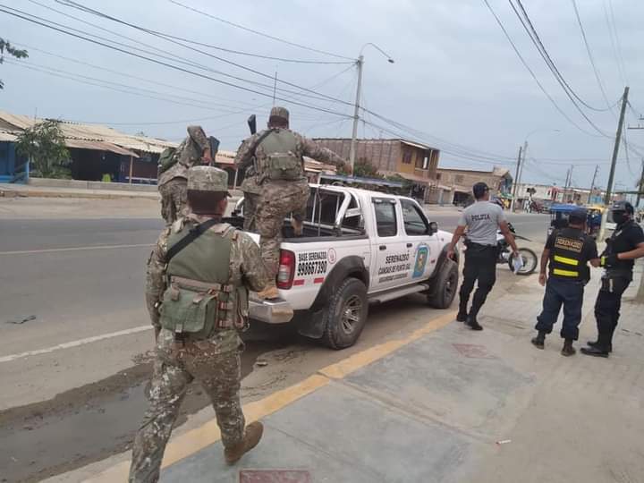 Asimismo, el Ejército Peruano se desplazó al mercado de abastos, y los serenazgos a los diferentes locales comerciales para dar cumplimiento al decreto de emergencia.