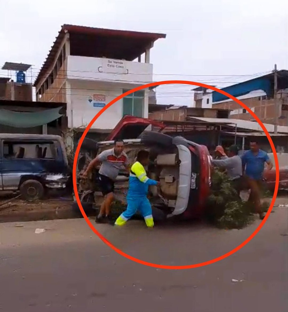 Un accidente de tránsito ocurrió en el centro poblado de Andrés Araujo Morán, generando preocupación entre vecinos y transeúntes. El hecho se registró en la carretera Panamericana Norte, a la altura del Colegio Médico, cuando un sedán rojo, placa 3V-158, se despistó y terminó fuera de la vía.