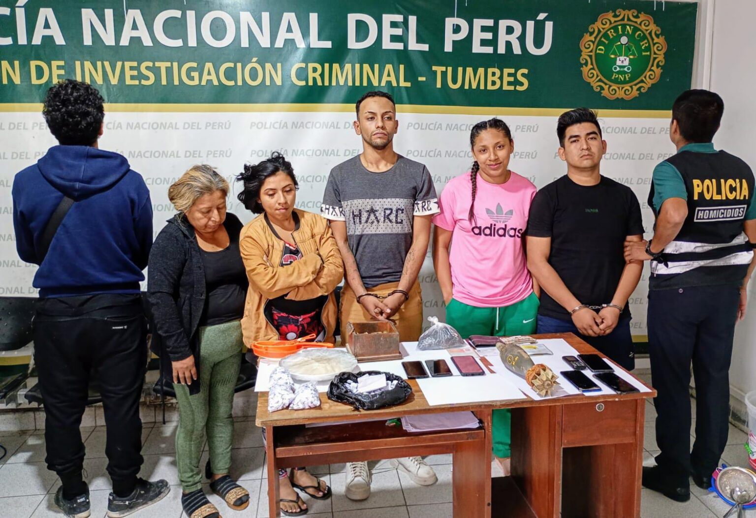 Tras una investigación exhaustiva y con seguimiento de drones se logró desarticular una banda criminal dedicada a la extorsión y venta de drogas en el sector Los Cocos de la ciudad de Tumbes, en el lugar se detuvo a cinco personas de diferentes nacionalidades.