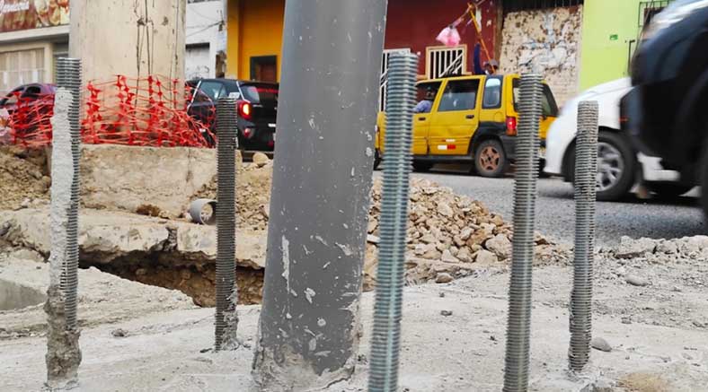 Algunos transeúntes quiénes a diario transitan por el centro de la ciudad de Tumbes, alertaron ante nuestro medio sobre el peligro que corren las personas que se desplazan por los alrededores de la obra de semaforización qué se ejecuta actualmente.