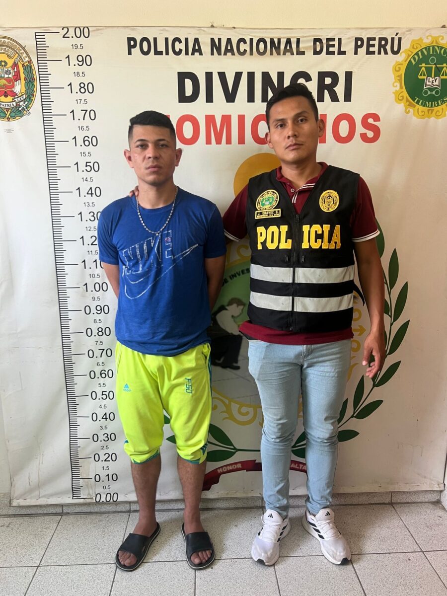 Al tomar conocimiento los agentes, montaron un operativo, ubicándolo por la calle Piura, en los exteriores del mercado de Tumbes; el sujeto al notar la presencia de los efectivos policiales intentó esconderse detrás de unas cajas de cartón, sin embargo, los uniformados se percataron de lo sucedido aprehendiéndolo de inmediato.