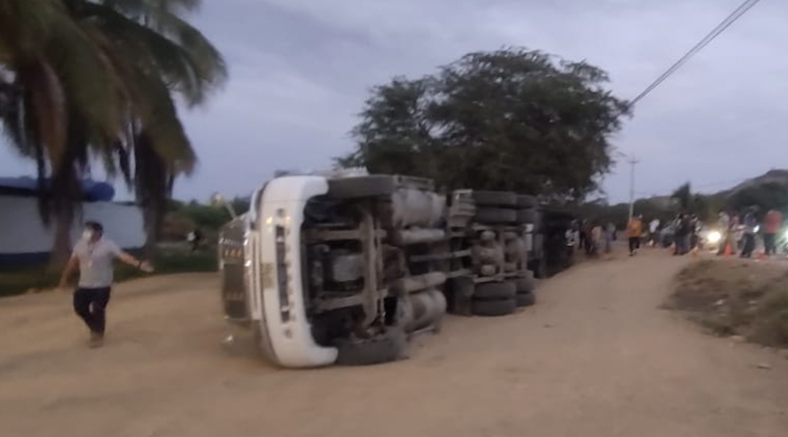 Un tráiler que pretendía ingresar hasta los ambientes de la empresa acuícola Marinasol, ubicada en el distrito de La Cruz, terminó volcándose, que por suerte solo se reportaron daños materiales en el pesado vehículo, en la región Tumbes.