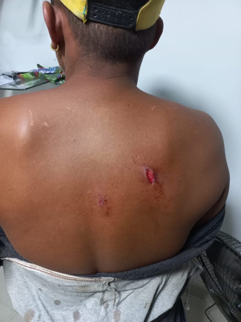 Es en ese momento que el extranjero se dirigió hasta la plaza de armas del distrito, lugar en donde se encontraba Flores Huamán, indicándole que le devuelva la batería del mototaxi, es ahí que este último sacó un filudo cuchillo de cocina y lo atacó ferozmente con dicha arma, propinándole una puñalada en ambas manos y dos cuchilladas en la espalda, para luego huir con rumbo desconocido.