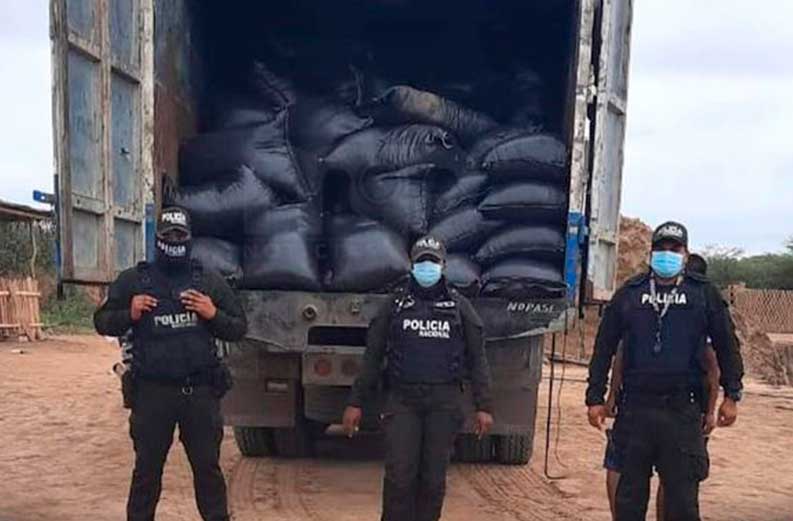 Un total de 600 sacos con plástico triturado fueron decomisados cuando eran transportados en un camión, en el Cantón Huaquillas, en Ecuador.