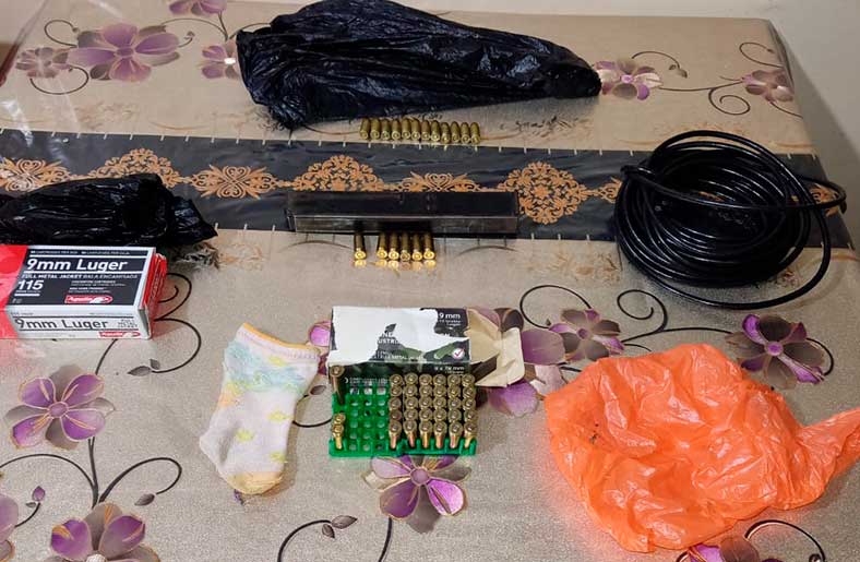 Es así que una vivienda ubicada en la parroquia Torata en el Cantón Santa Rosa, en Huaquillas, fue intervenida, encontrándose en su interior, 50 municiones calibre 9mm, marca Lugher, 50 municiones calibre 9mm, 01 alimentadora de arma de fuego con 06 municiones 9mm, y 20 metros de mecha lenta, utilizada para minería.