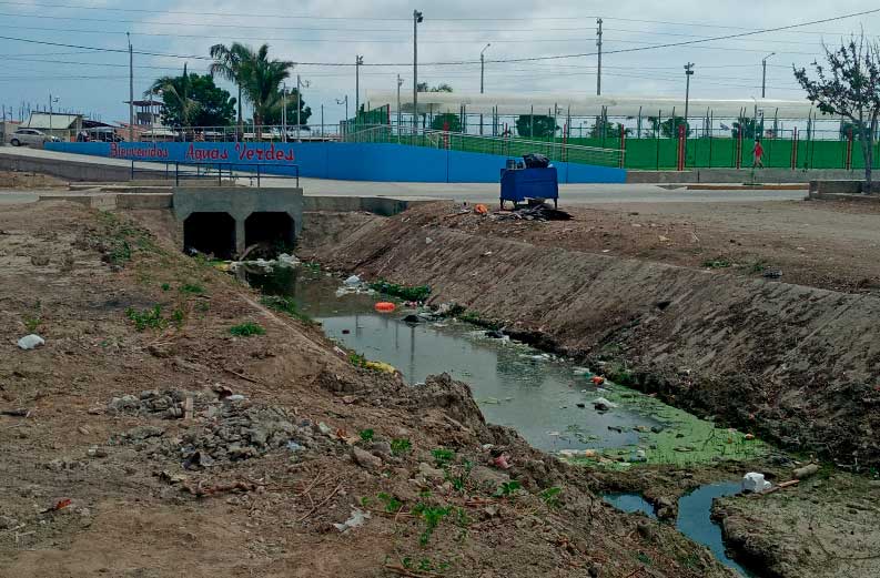 El distrito de Aguas Verdes en el sector de (Nueva Esperanza) en intersección con (Los geranios), se ve afectado por los desmontes, basura y residuos de todo tipo, con los cuales se genera acumulación hasta llegar al estado de putrefacción de los residuos en la muy conocida quebrada (MARCO FELIPE), la cual separa la jurisdicción del distrito Aguas verdes y la provincia de Zarumilla, por la falta de valores para cuidar el medio ambiente que los rodea a estos pobladores, que de igual manera ésta problemática necesita la presencia de la autoridad correspondiente, ya que más de las veces solicitan economía pública, para la descolmatación de éste canal y/o quebrada.