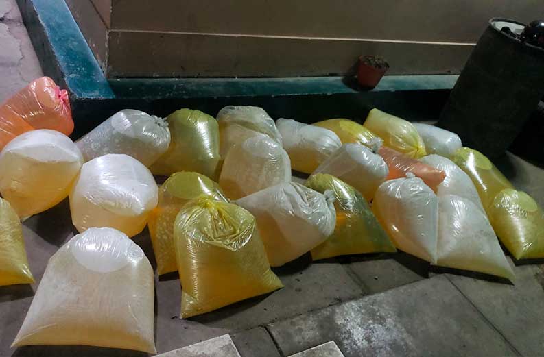 Los efectivos policiales iniciaron una persecución hasta llegar al mercado de Aguas Verdes, lugar donde se procedió a intervenir, verificando que en la parte posterior llevaba mercadería que emanaba olor a combustible, pudiendo evidenciar bolsas de polietileno por lo que se procedió a trasladar el ilegal inflamable a la comisaría del sector.