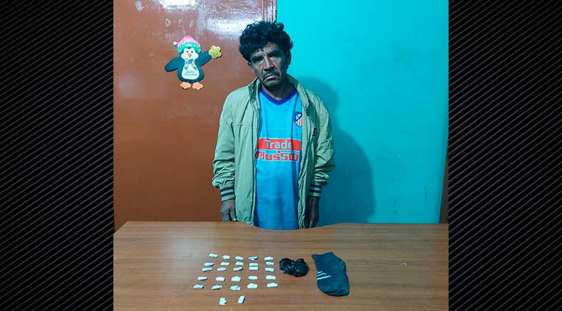 Este al ver a los agentes policiales quiso darse a la fuga, pero rápidamente fue reducido y tras realizarle el registro preliminar, se le encontró una bolsa con olor y características a pasta básica de cocaína, asimismo 30 envoltorios de PBC.