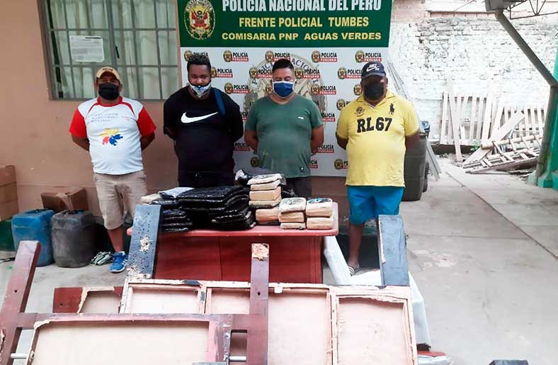 CAPTURA. Como se ha informado, el pasado 05 de julio, cuatro extranjeros fueron detenidos por agentes del orden cuando transportaban droga camuflada en dos camas y un cooler en un motofurgón en el distrito de Aguas Verdes, en la región Tumbes.