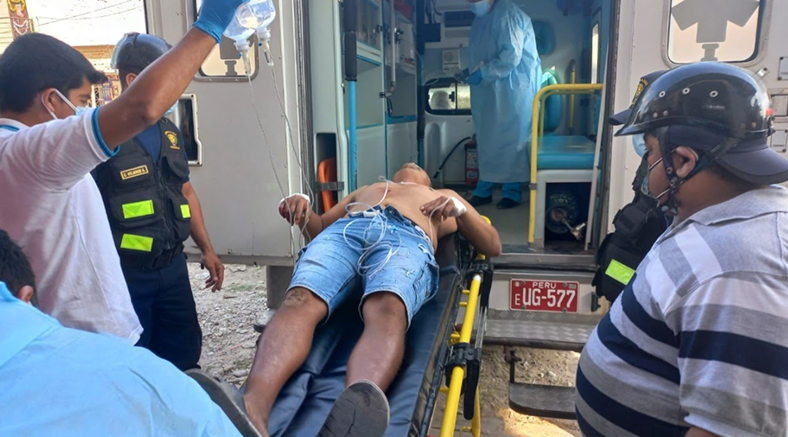 Hasta el lugar de los hechos se hizo presente agentes de la Unidad de Serenazgo de la Provincia de Zarumilla, recurrieron al auxilio de inmediato, el herido fue trasladado al centro de salud de Zarumilla donde el médico de turno Jorge Méndez Pereda quién diagnosticó herida por proyectil de arma de fuego a la altura de epigastrio con entrada y salida del proyectil y el otro impactó en la mano derecha, y traumatismo abdominal por arma de fuego (PAF), por la gravedad de sus heridas Robert Ruiz fue referido hasta el hospital JAMO – II, donde su estado es delicado.