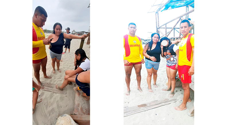 Ante el pedido de auxilio, los agentes Yeen Bustamante y Alex Inca se sumergieron en las aguas, logrando rescatarlas. Posteriormente, madre e hija fueron puestas a buen recaudo a orillas de la playa.