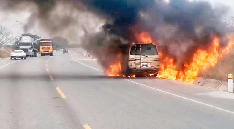 Una camioneta Van se incendió en pleno Eje Vial y se tuvo que restringir el tránsito en la Panamericana Norte, hasta donde llegaron bomberos para intentar acabar con el siniestro que alarmó a los choferes y pasajeros, en la provincia de Zarumilla, en la región Tumbes.