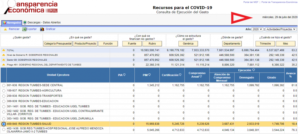 DE ACUERDO A ECONOMÍA, SALUD HA GASTADO EL 18.4% DE S/ 15’969,838 PARA COMBATIR EL COVID-19 EN TUMBES